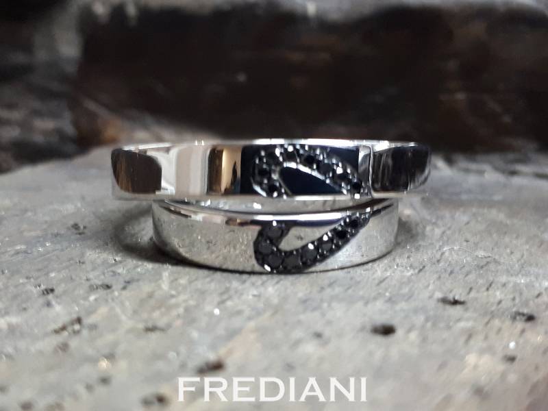 Paire d'Alliances en or blanc 750/000 sertie de 16 diamants noirs .