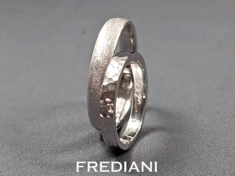 Paire d'Alliances en or blanc 750/000 martelé et brossé.
