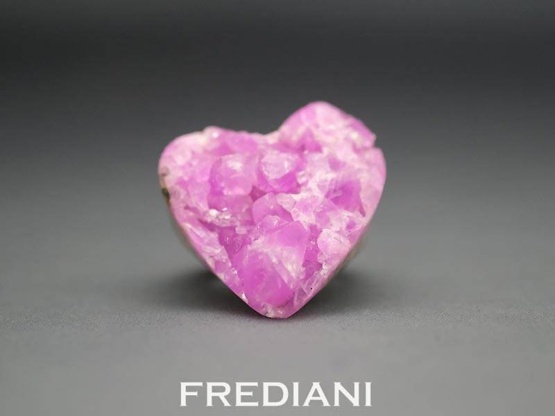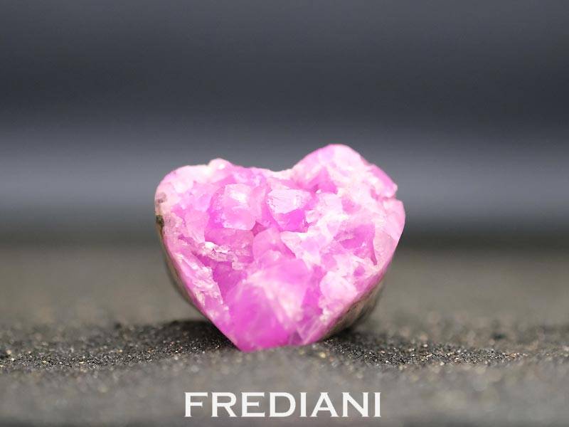 Bague taillée dans la matière brute laissant apparaitre sur le dessus les cristaux de Cobaltocalcite Naturels.