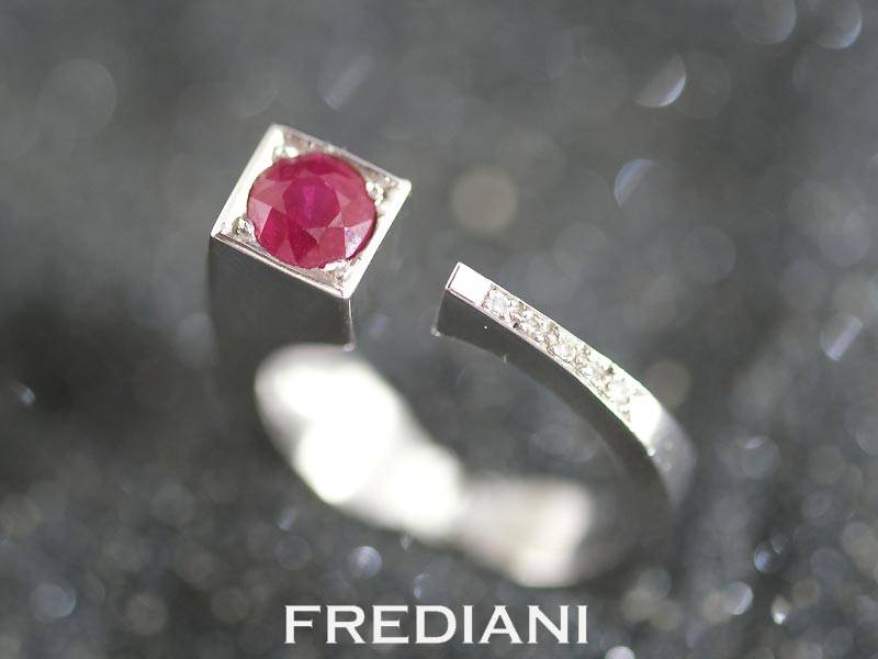 Bague en or blanc 750/000 sertie d'un Rubis rond et 5 diamants.