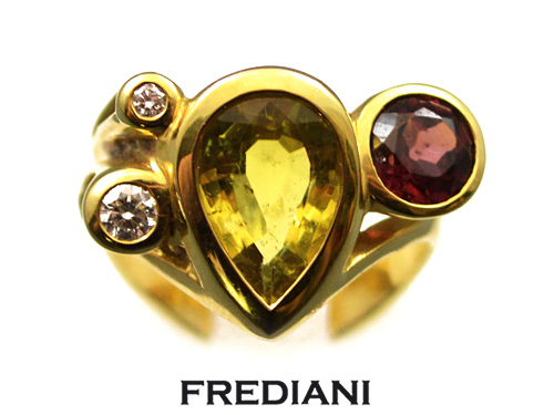 Magnifiques ensemble de Grenat et de Tourmaline entourés de 2 Diamants et montés sur de l'Or jaune 18 carats.