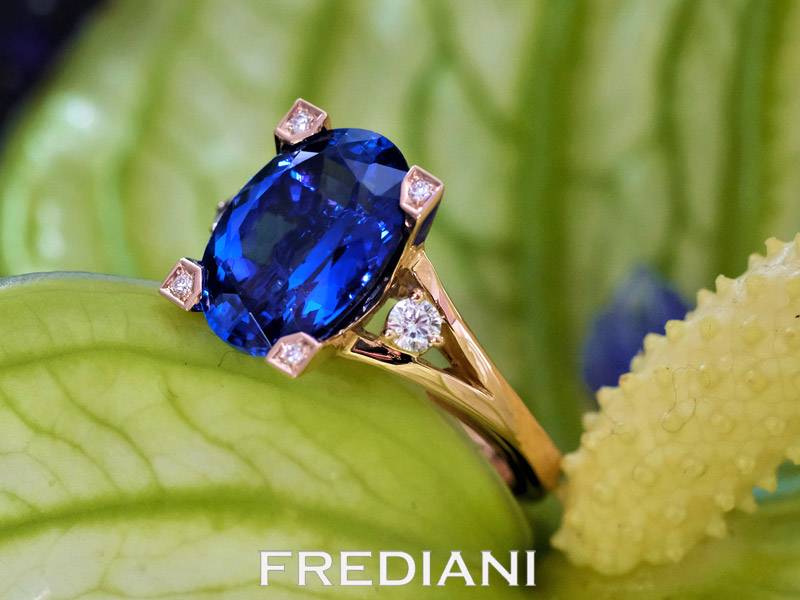 La tanzanite est d'une très belle couleur, parfaitement taillée et très brillante.