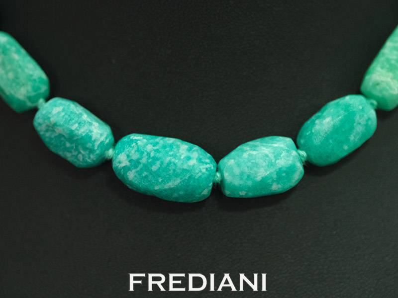 Collier en amazonite naturelle et fermoir en or blanc 750/000 réalisé à la main dans notre joaillerie à Nice.