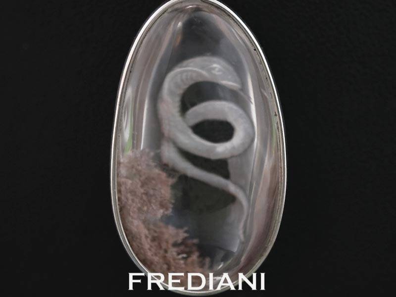 Pendentif en Argent 925/000 serti d'un Quartz à inclusions sculpté à la main.Cordon de soie et son fermoir en argent offert.VENDU