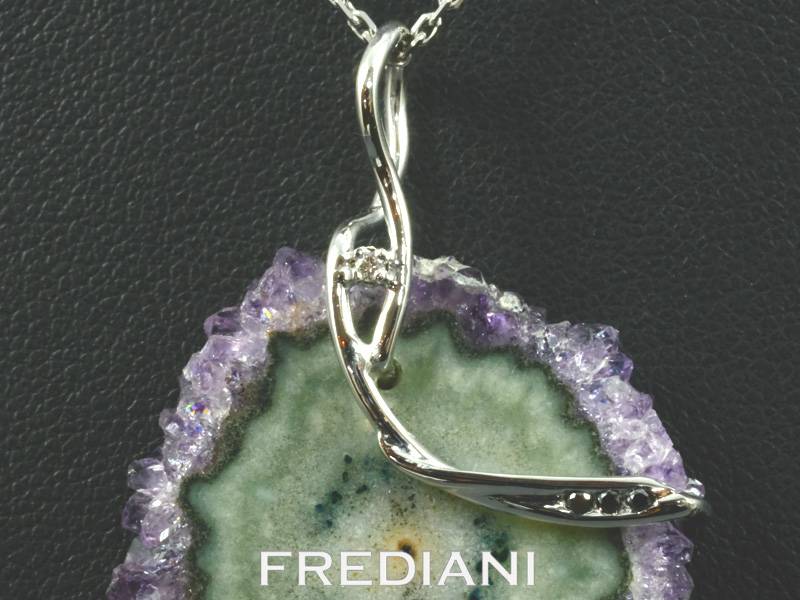 Pendentif en or blanc avec une tranche de stalactite d'améthyste provenant d'Uruguay.