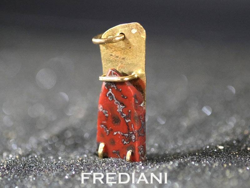 Pendentif en Or jaune 18 carats serti d'une plaque d'os de dinosaure fossilisé.