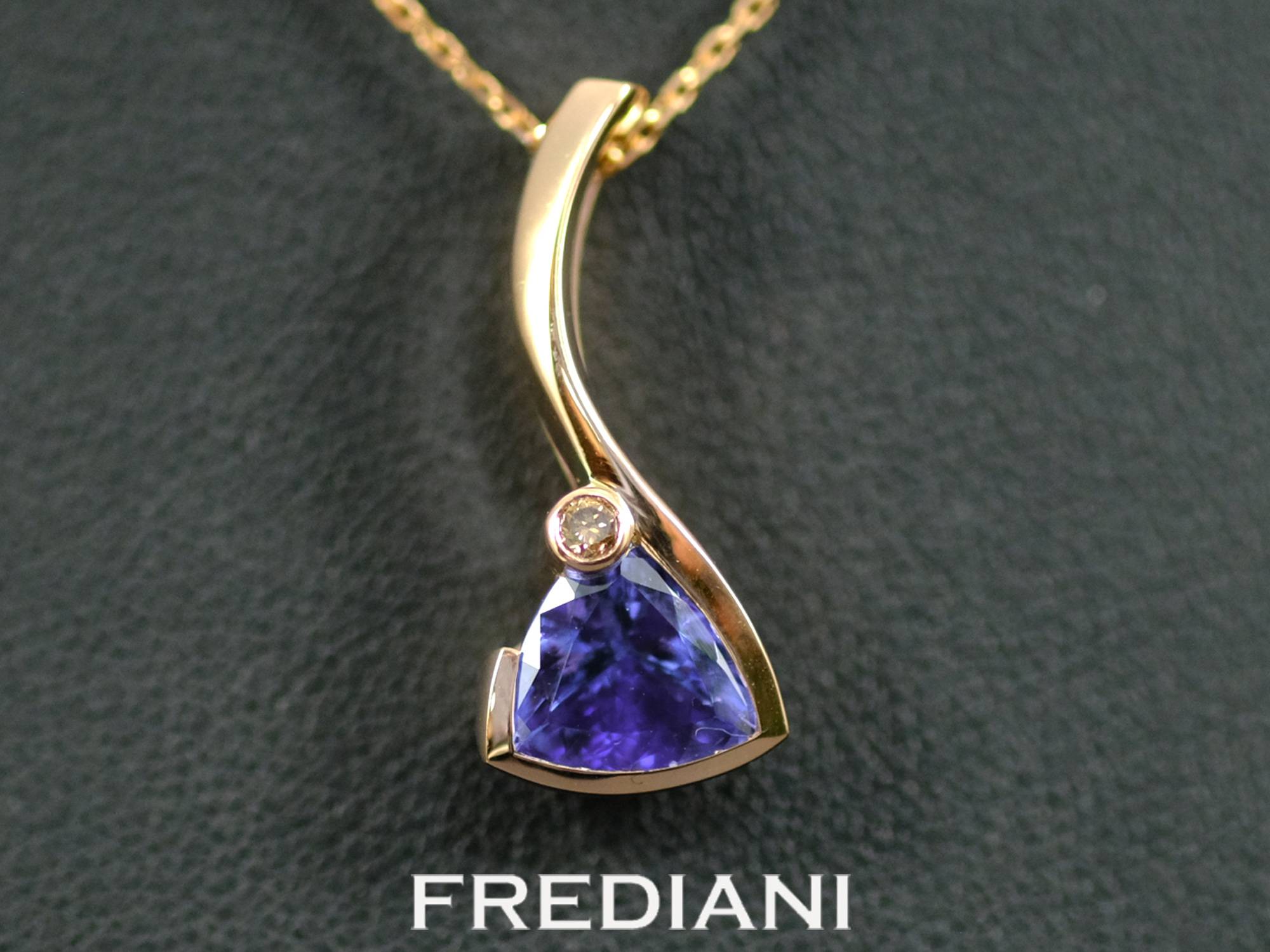 Sobre et chic, ce pendentif en or rose est serti d'une superbe tanzanite troïdia accompagnée d'un diamant brun naturel.
